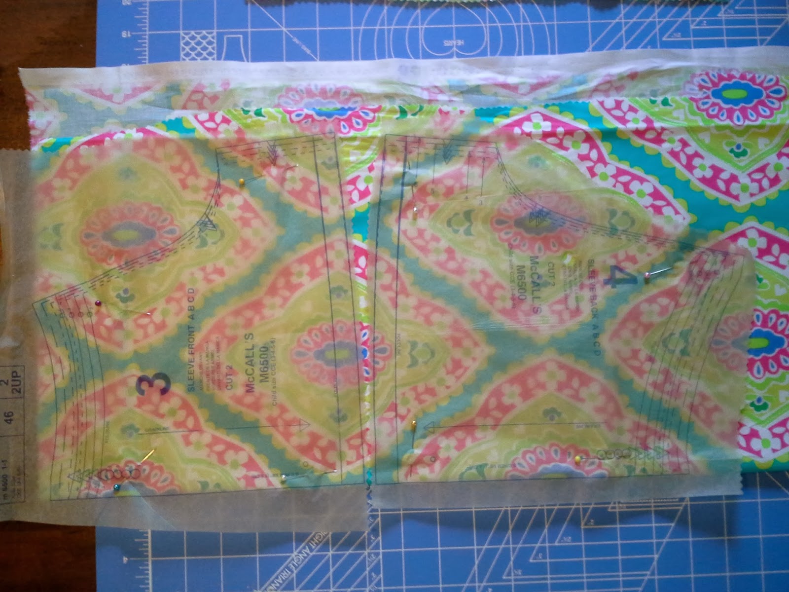 For the sleeves, I put both sleeves on one fold, as seen in picture below. Again, I'm very conservative with my fabric. (I might need it for another project someday so I try to not use a lot of extra fabric.)